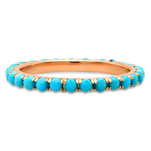 Give your stack a major update by incorporating a sweet pop of color.  Turquoise cabochons are set in a classic eternity style, so you have 360 degrees of fun.