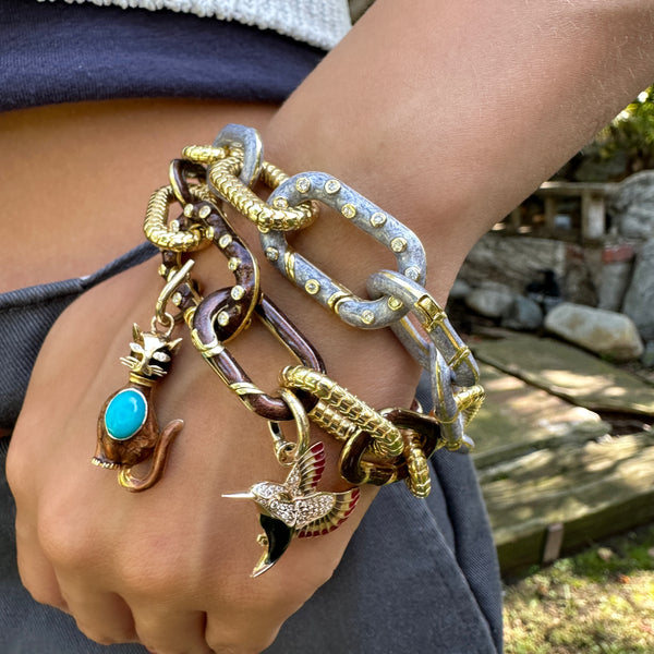 About the designerRoyal Nomad blends the worlds of luxury jewelry design and music production, creating highly coveted collections. Founded by Khristine Remington-Golonka, a renowned jewelry designer, and Taylor Golonka, a former DJ turned entrepreneur, the brand draws inspiration from their love of travel and unique backgrounds. Khristine's designs are influenced by vibrant colors, brilliant textures, and unique shapes, while Taylor brings business acumen and a passion for exploration.