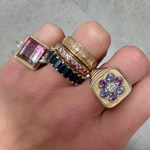 I was completely mesmerized when I started to explore the Family Blooms collection by Campbell + Charlotte. Each ring is fully customizable with a vast assortment of birthstones. This beauty comes with a dazzling row of diamonds which perfectly frame the front facing gemstones. By hand selecting the stone of each petal and pistol, this is a bauble that can be passed down through generations and enjoyed by everyone in the family. See the image below for stone selection specifications.