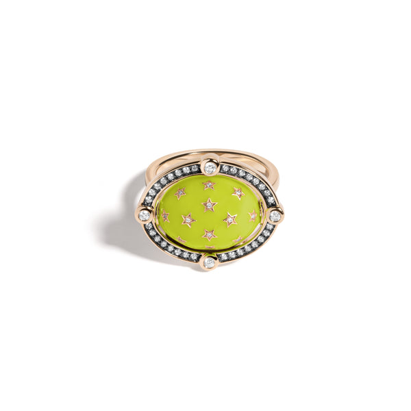 Reversible Gemstone & Enamel Compass Ring with Diamonds