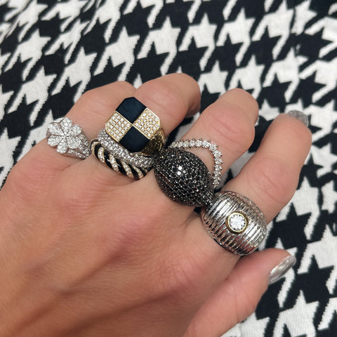 The rings from Yvonne Leon are a testament to innovative design and bold creativity. Featuring atypical ways of wearing stones and often mismatched pairs, these rings make a statement. Perfect for those who want to express their individuality and stand out with unique jewelry pieces.